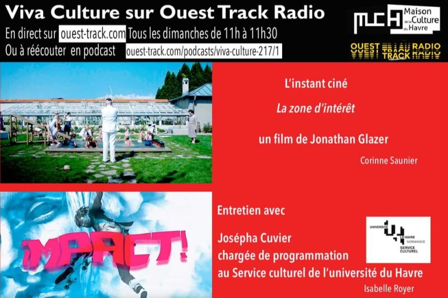INSTANT CINE The zone of interest, de Jonathan Glazer avec Sandra Hüller et Christian Friedel, adapté du roman de Martin Amis, sur la vie de Rudolf Höss et sa famille / Corinne Saunier ENTRETIEN / Josépha Cuvier, chargée de programmation au Service culturel de l’université / le FESTIVAL IMPACT MUSIQUE VICKY R / SYSTM (29 SEPT 23 2,45 mn) Vicky R de son nom complet Victoria Rousselot Azizet Désirée, née le 19 août 1996 à Libreville au Gabon, est une rappeuse franco-gabonaise qui est productrice. Elle s’est fait connaitre en 2021 sur les plateformes de streaming aux......