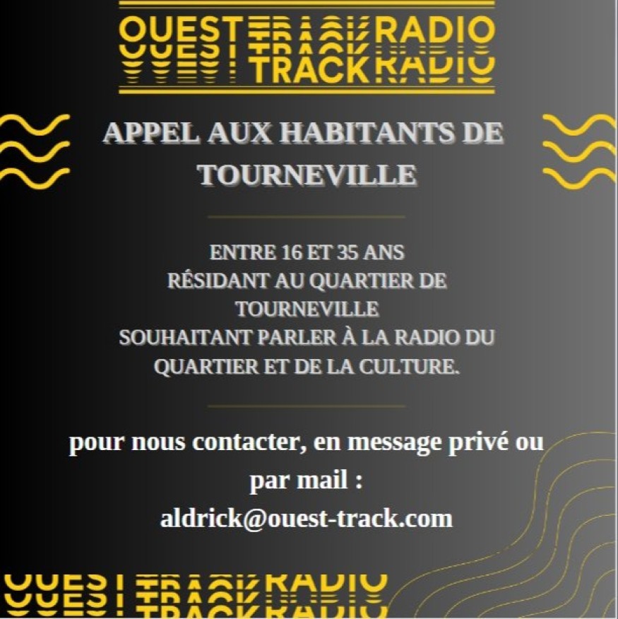 Dans le but de collecter des informations sur les us et coutumes des habitants du quartier de Tourneville, nous recherchons des personnes originaires de ce quartier, entre 16 et 35 ans qui souhaiteraient nous raconter leur quotidien en tant qu'habitant de Tourneville et leur manière de consommer la culture.