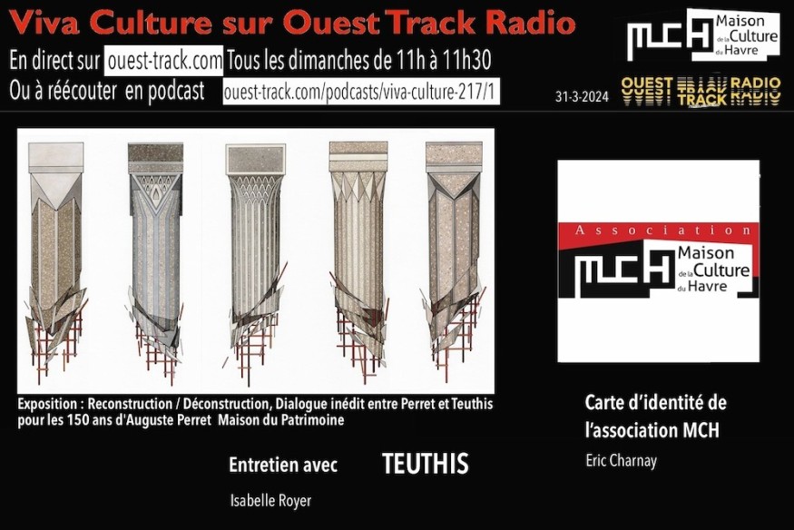 CARTE D IDENTITE DE L ASSOCIATION MCH Eric Charnay TRANSITION portrait de Teuthis, street artiste ENTRETIEN TEUTHIS, exposition à la Maison du Patrimoine pour les 150 ans d’Auguste Perret : Reconstruction / Déconstruction MUSIQUE Voyou - Les bruits de la ville (3.27) AU REVOIR agenda Are you experiencing ? Exposition Caroline Hayeur au Carré de l’Hôtel de ville : Radioscopie du dormeur