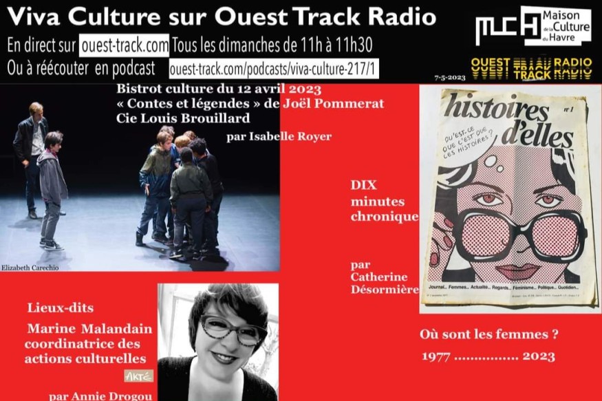 10 MN CHRONIQUE : Où sont les femmes ?#1BISTROT CULTURE DU 12 AVRIL23 : Contes et légendes de Joël Pommerat, 7 avril 23LIEU DIT : Marine Malandain (Akté)AU REVOIR Agenda culturel : la Nuit des musées au MuMa le 13 mai 23