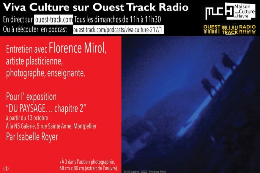 EMission du dimanche 04 septembre 2022 ENTRETIEN : Florence Mirol, artiste plasticienne, photographe, enseignante. Exposition à Montpellier Autour du paysage, à partir du 13 octobre 22, n°5 Galerie, rue Sainte Anne.