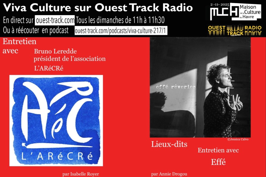 Au programme de l'émission de ce dimanche 02 novembre 2025 : ENTRETIEN : avec Bruno Leredde, président du collectif L'aRécré. (Isabelle Royer) LIEU DIT : Effé, guitariste (Annie Drogou) Agenda : BISTROT CULTURE Lundi 3 à 17h au bar L'Aub'art 163 rue Victor Hugo