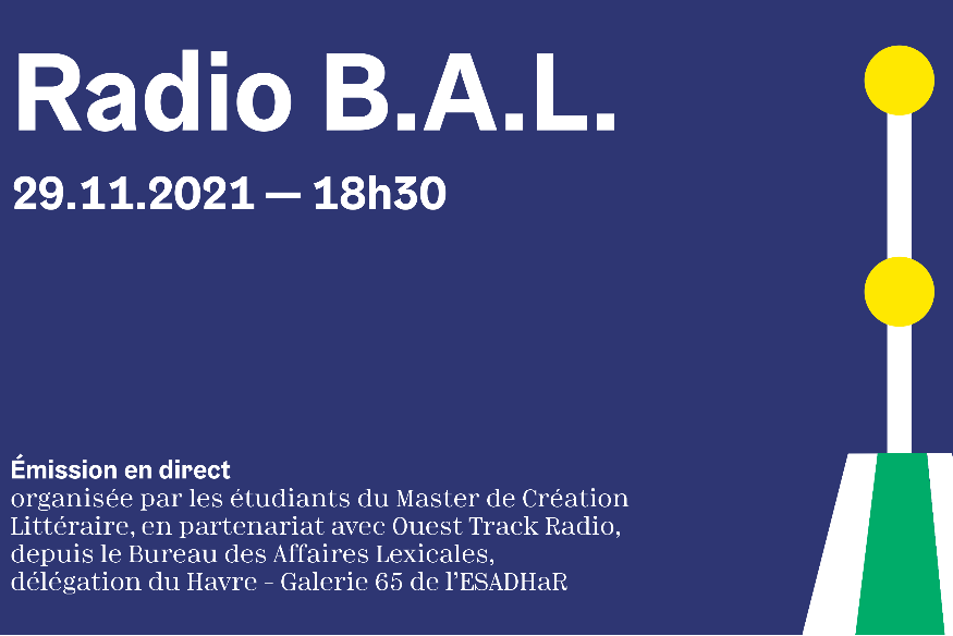 Le Bureau des Affaires Lexicales se réunit pour une session exceptionnelle en public et en direct sur radio Ouest-track.Un sujet controversé : les mots limites. A l'occasion de ce colloque radiophonique, nous recevrons des expert.e.s lexicaux en direct sur la plateau mais aussi nous espérons les témoignages sur le vif des spectateur.ice.s et des auditeur.ice.s. Qui que vous soyez, vous êtes convié.e.s à participer à cette réflexion.Les étudiant.e.s du Master de Création Littéraire du Havre....
