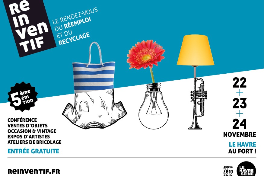 Le Salon Réinventif pose ses valises pour une 5ème édition au Fort de Tourneville, pour apprendre et sensibiliser sur le rémploi et le recyclage, à travers des stands, des ateliers et des conférences. Un salon qui dure trois jours, sous la tente amenagée pour l'occasion au sein du Fort, et prête à accueillir plus de 500 personnes sur chaque ateliers. Pour s'y inscrire, rendez-vous sur la page du salon réinventif. La page facebook de la communauté du Havre pour se tenir au courant des actualités : Le Havre Seine Métropole ...