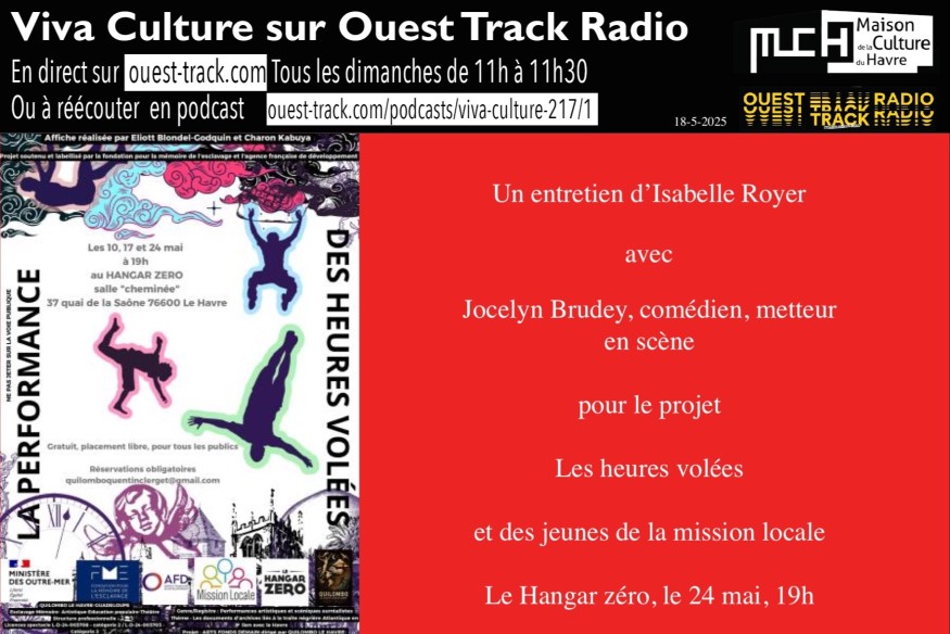 ENTRETIEN : Jocelyn Brudey, comédien, metteur en scène, pour le projet Les heures volées et des jeunes de la mission locale. Le Hangar zéro 24 mai 19h AGENDA : au Volcan, La Périchole d'Offenbach, par des élèves du conservatoire Honegger, 31 mai 19h