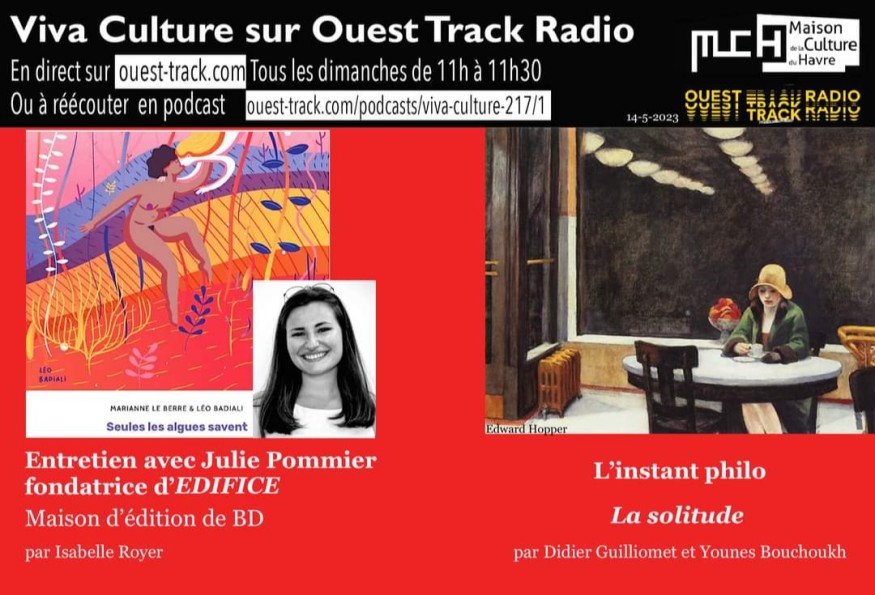 NSTANT PHILO : la solitude (Didier Guilliomet et Younes Bouchoukh)ENTRETIEN : Julie Pommier, fondatrice de la maison d'édition EdificeAU REVOIR : agenda : 20 bancs dans le Havre, 20 étapes littéraires (La Galerne)