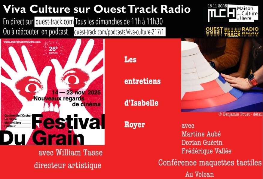 ENTRETIEN AVEC William Tasse, Festival du Grain à démoudre 14/23 novembre 25AUTOUR DES MAQUETTES DU VOLCANENTRETIENS :AVEC 1 Martine Aubé, spectatrice mal-voyanteAVEC 2 Dorian Guérin, architecteAVEC 3 Frédérique Vallée, directrice d'Harmonie mutuelleAGENDA CULTUREL : Plein Phare In (18 nov/2 déc) : Näss de Fouad Boussouf, le 18 nov à 20h30, Intranquilles de Charlotte Rousseau le 20 nov à 20h