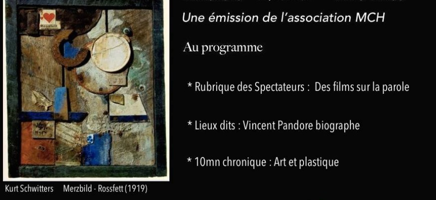 RUBRIQUE DES SPECTATEURS : DES FILMS SUR LA PAROLE LES LIEUX DITS : VINCENT PANDORE BIOGRAPHE 10'CHRONIQUE : ART & PLASTIQUE CONSEIL DE LECTURE AVEC LA LIBRAIRIE AU FIL DES PAGES : LA GUERRE EST UN RUSE DE FREDERIC PAULIN