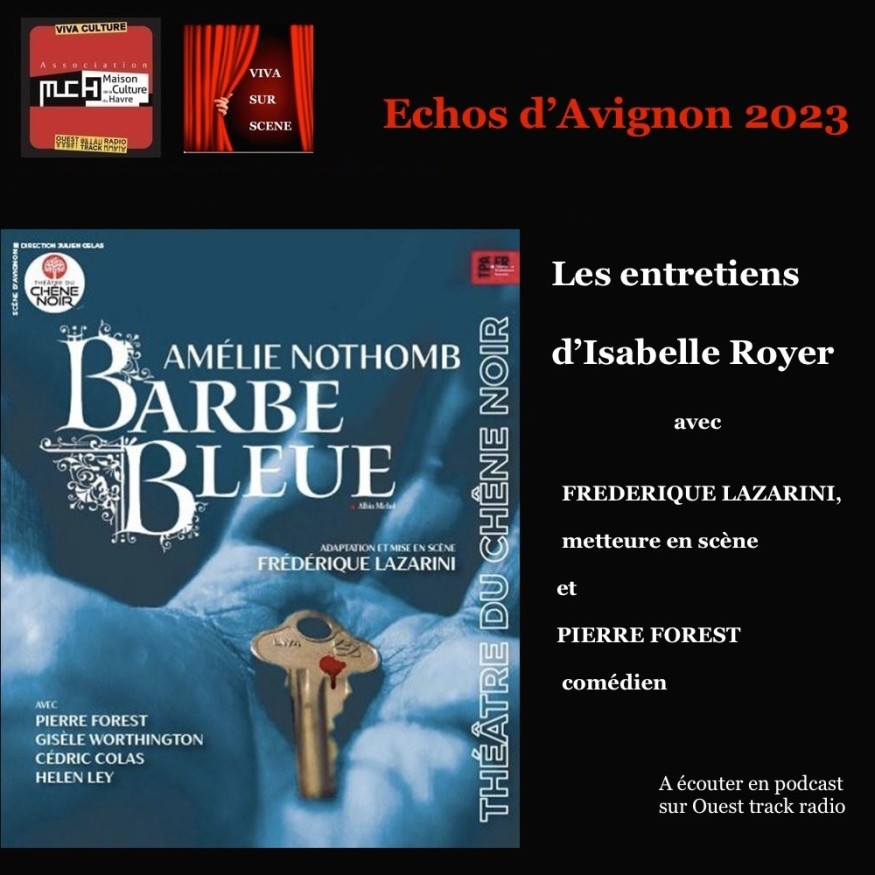 INTRO : Barbe bleue, adaptation du roman éponyme d’Amélie Nothomb au théâtre du Chêne noir à Avignon.ENTRETIEN : FREDERIQUE LAZARINI, metteure en scène, et PIERRE FOREST, comédienMUSIQUE Concerto d’Aranjuez / Rodrigo, par Thibaut Garcia
